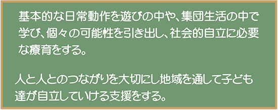 児童発達支援・放課後等デイサービスるーむはスムーズな社会生活を送るための療育を行っていきます。日々の子育てでお疲れの親御さん、毎日仕事で忙しい親御さんが安心してお子さんを預け、悩みや相談事を気軽に話すことのできる憩いの場でもありたいと思っています。