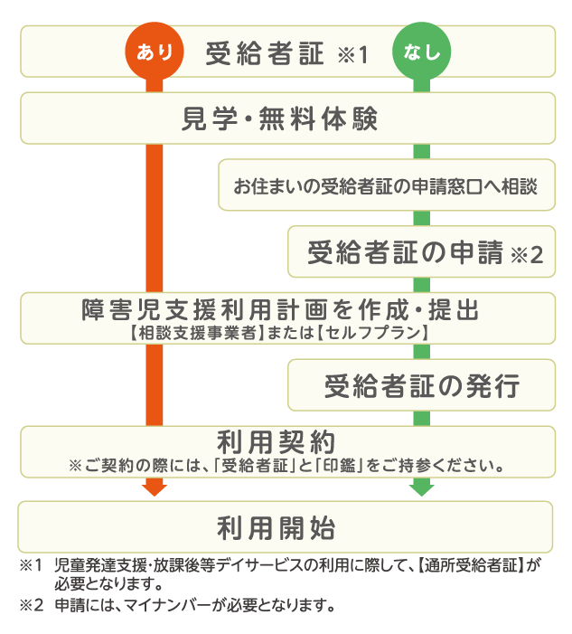 児童発達支援*・放課後等デイサービスは市区町村発行の受給者証があれば9割が自治体負担となり、1割が自己負担となる制度です。